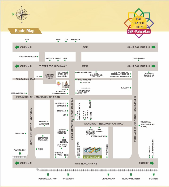 The Most Astonishing Affordable Villa Housing Project of OMR. Situated between OMR-Kelambakkam to Vandalur Road, Declared Satellite City and upcoming Metro connectivity. Easy access to IT hubs, Residential and Entertainment zones. Step out for your Professional Achievements or Relaxation Recreation, all at easy reach. Design your own Dream villa, Fix your required land size, Fix your budget, Live Your Dream… Easy Reach to Schools, colleges, Hospitals, Employment Hubs and Entertainment zones.